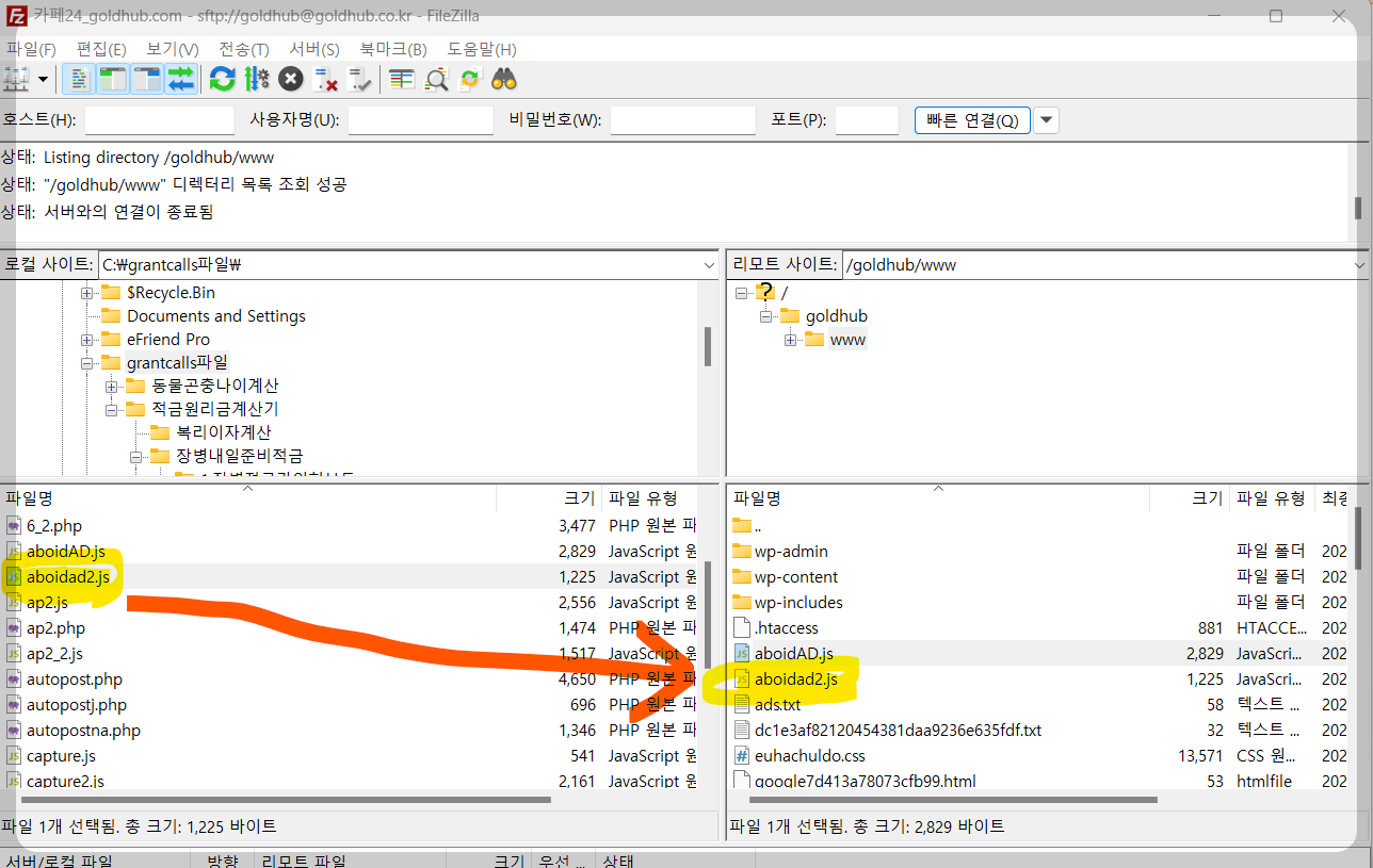 위에서 저장된 경로는 "https://goldhub.co.kr/aboidad2.js" 입니다.