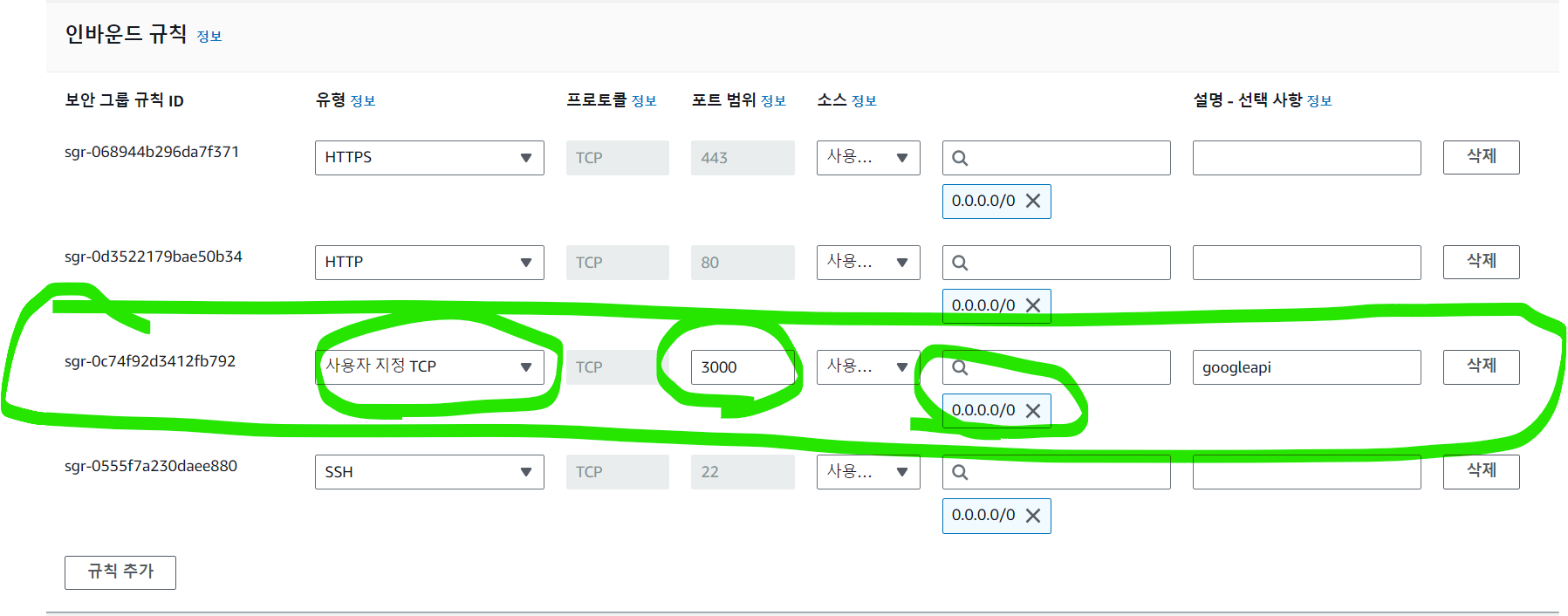 13. 중요한 것은 포트 3000이 작동되지 않는 경우에는 aws에 접속하여 인스턴스, 보안규칙, 인바운드규칙을 수정해야 합니다.