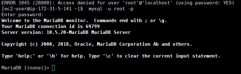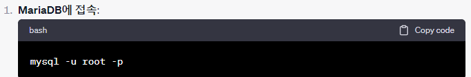 아래 내용을 입력하여 MariaDB에 접속 합니다.