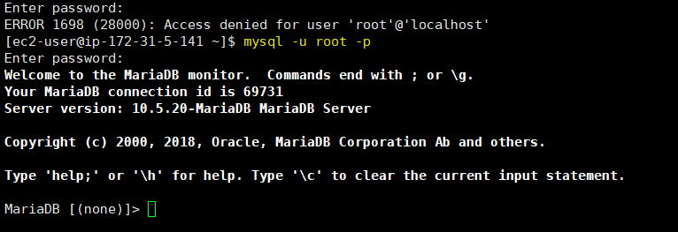 ERROR 1698(28000)은 비밀번호에 오류가 있는 것입니다.
